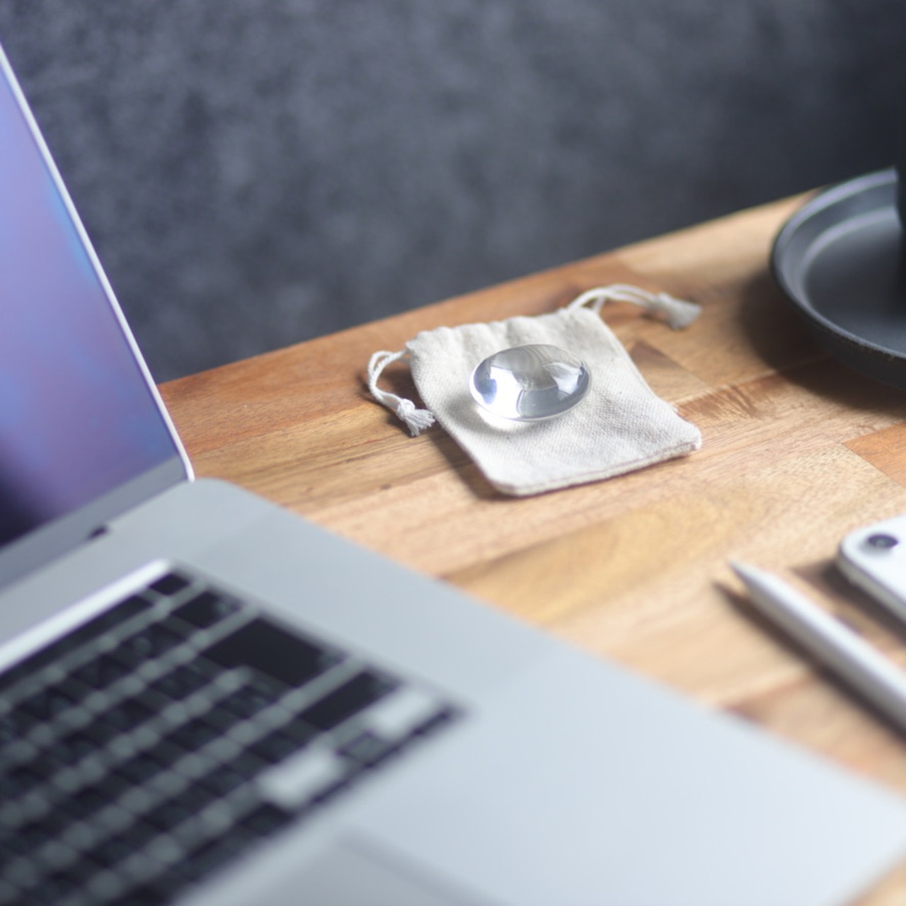 テーブルの上に、少し浮いているようにみえる透明なその姿は、眺めていると癒されると同時に、何か訴えかけてくるようにも感じます。